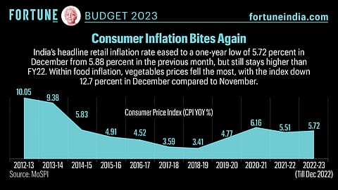 Within the food inflation, vegetable prices fell the most, with the index down 12.7% in December 2022 compared to November 2022.