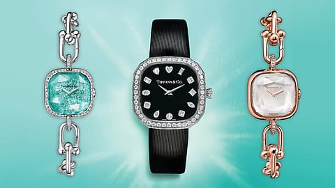 The Eternity collection anchors Tiffany’s watch proposition in India. It features round and cushion-shaped cases crafted in 18k white and rose gold, accented with diamonds, signature Tiffany Blue guilloché dials, black lacquer finishes, and gemstone detailing. Positioned firmly in the high jewellery watch segment, the collection is aimed at gifting occasions and long-term keepsakes. Prices are available on request.