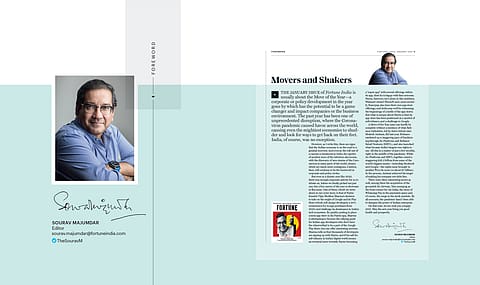 The January issue of Fortune India is usually about the Move of the Year—a corporate or policy development in the year gone by which has the potential to be a game changer and impact companies or the business environment. The past year has been one of unprecedented disruption, where the Coronavirus pandemic caused havoc across the world, causing even the mightiest economies to shudder and look for ways to get back on their feet. India, of course, was no exception.