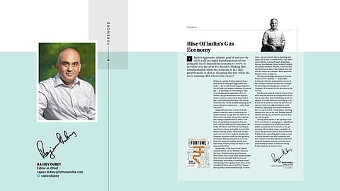 Mega infrastructure creation is in the works to take the share of natural gas in India's primary energy fuel mix from 6% in FY15 to 15% in 2030. Guess who's driving this change? Spearheaded by PSUs, Gail Ltd., oil marketing companies, Petronet LNG, Oil and Natural Gas Corporation, Oil India, Petroleum and Natural Gas Regulatory Board, private and public sector CGD players, among others. Read P.B. Jayakumar's account of how India is making this dramatic transition while the fast-growing economy's daily gas demand is set to rise from 178 mmscmd (million metric standard cubic metres per day) in FY22 to 380 mmscmd by FY30.