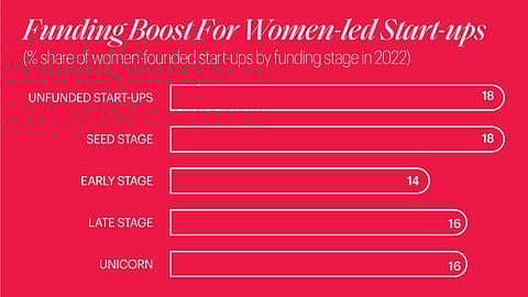Around 18% of start-ups in India are led by at least one woman founder or co-founder. Out of the 11 start-ups with women-led founders or co-founders that have a unicorn valuation ($1 billion or above), five became unicorns in 2022 itself.