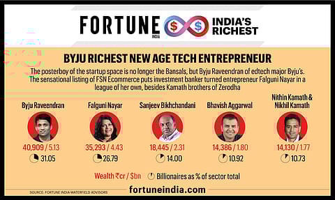 The poster boy of the startup space is no longer the Bansals, but Byju Raveendran of ed-tech major Byju's. The sensational listing of FSN Ecommerce has put investment banker turned entrepreneur Falguni Nayar in a league of her own. While the likes of the Kamath brothers of Zerodha, though bootstrapped, are giving the biggies in the securities business a run for their money