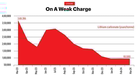 In January 2024, the price of lithium carbonate plummeted to about 95,500 Chinese yuan per tonne ($13,446), marking a three-year nadir. This represents an 80% decrease from the previous year, driven by a combination of slowing demand, overproduction, and increased mining activities. Such a significant drop in lithium prices will lead to reduced costs for electric vehicle manufacturers and lower expenses for producers of green technologies. For instance, prices of lithium-ion battery packs dropped by 14% to a record low of $139/kWh last year against $151/kWh in 2022.