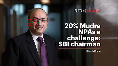 The country’s biggest lender by assets has seen non-performing assets (NPA) hit a high of 20% in its Mudra loan portfolio of ₹26,000 crore. “In terms of quality, it is a challenge,” chairman Dinesh Khara tells Fortune India.