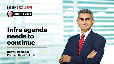 Ahead of the budget, Deloitte India partner Bhavik Damodar said that the government needs to continue its infrastructure agenda with investments in highways and a focus on new and emerging areas such as the hydrogen sector. “One is the continued agenda. The road sector push has to continue. Renewable is big and needs to continue, but the question is how much of the renewable can we put on the grid. There is a need to look at the sectors where the private guys have not played too much of a role. For example, in railways there is a big vacuum today in terms of private involvement. Also, in defence, especially when we have a goal to become Atma Nirbhar in defence, what do we do there?” Damodar said in an interaction with Fortune India.