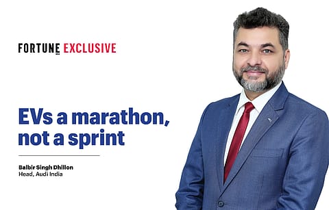 "Our long term goal is to also sell more electric cars and by 2025 we intend to reach 15% of our sales into EVs. Audi globally has also decided that it will become an electric car company in some years. We will only be launching electric from 2026 but will continue to sell IC engines till 2033. So, the direction is clear and we need to work towards it," says Balbir Singh Dhillon, head, Audi India to Fortune India.