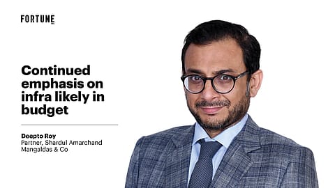 Deepto Roy, partner, Shardul Amarchand Mangaldas & Co, said that continued emphasis on infrastructure is likely to continue in the Budget like the previous years. “Present government is well versed in understanding the need of infrastructure in the country,” he said, adding that there is a need to encourage flow of private capital in the infrastructure sector which has remained tepid due to structural issues.