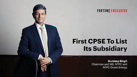 NTPC is the first central public sector enterprise (CPSE) to list its subsidiary, NTPC Green Energy, on the stock exchanges, says Gurdeep Singh, chairman and managing director of the company. “Given the growth opportunity in renewable space, the potential and the capex requirement is so heavy that we can give the chance to the investors to come in and be part of this journey,” he says.