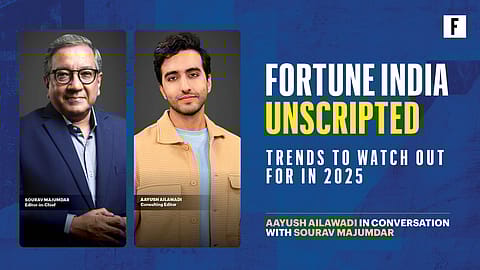 Join Aayush Ailawadi, consulting editor, for an insightful discussion with Fortune India Editor-in-Chief Sourav Majumdar as they explore the major trends shaping 2025. From India's economic future and corporate hurdles to the meteoric rise of AI and its transformative effects on businesses, governments, and daily life, this conversation has it all.