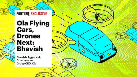 Ola’s Chairman and Group CEO Bhavish Aggarwal has set his eyes on his next big bet. He wants to fly into the future, quite literally. The 35-year-old entrepreneur said he wants to explore other options of mobility like flying cars. “We’ll look at mobility very holistically across the value chain, across products or paradigms. We’re looking at newer concepts more relevant to India like potentially flying cars etc, drones, etc.,” he told Fortune India.