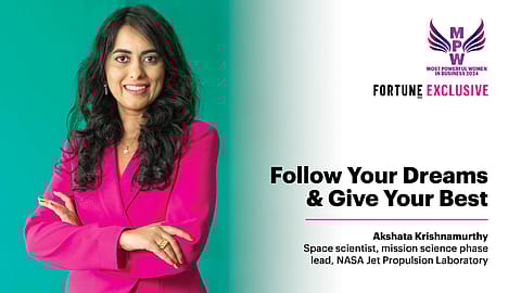Akshata Krishnamurthy, Principal Investigator and Mission Science Phase Lead at NASA's Jet Propulsion Laboratory says education has always played an important role in her life. Speaking to Fortune India, the 35-year-old space scientist, ranked 40th in the Most Powerful Women list for 2024, talks about her parents’ role in imparting good values, and advice to budding scientists, the meaning of care in her life and the role of power lists like Fortune India MPW 2024.
