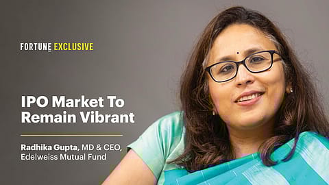 Edelweiss Mutual Fund MD and CEO Radhika Gupta said the IPO market in India will continue to remain vibrant but the craze for SME IPO may end up badly for the investors. “You will continue to see a very vibrant IPO market. Over the last ten years, companies in India have received a lot of private capital. And now these companies have become so large that the only way the private capital will get an exit is the listed market. Also, India is such a nascent market that a lot of sectors are not even present on the exchange. The largest exchange is not even listed today. Second largest food delivery company is not listed today. There is a lot of scope for the IPO market in a country like ours,” she said during an interaction with Fortune India.