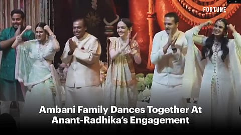 Anant Ambani and Radhika got engaged in front of family and friends amidst traditional Gujarati ceremonies in Mumbai on January 19. A surprise dance performance by the Ambani family members led by Nita Ambani was loudly cheered and added to the enthusiasm and familial bonding among all present.