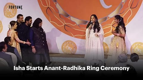 Isha announced the commencement of the Ring Ceremony and Anant and Radhika exchanged rings in front of family and friends and sought their blessings for their upcoming union.
