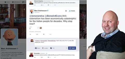 Andreesen, who has been on the Facebook board since June 2008, took to Twitter to criticise the ruling by commenting that it is "morally wrong" to deny the "world's poorest free partial Internet connectivity." He called India's decision as "another in a long line of economically suicidal decisions made by the Indian government against its own citizens." But the one tweet that was in poor taste was when he made a reference to India’s colonial past: "Anti-colonialism has been economically catastrophic for the Indian people for decades. Why stop now?" (See: Pictured tweet)