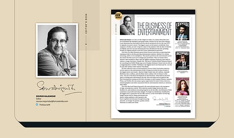 For this collector’s issue on entertainment, Fortune India’s journalists looked at several aspects of the entertainment world to bring you stories not just of some of the biggest movie star brands—Ranveer Singh (brand value $63 million), Amitabh Bachchan ($41.2 million), and Alia Bhatt ($36.5 million) who we feature in this issue—but also of the latest developments in show business. If the battle in the OTT space is turning more interesting by the day, with even large movie producers like Eros International coming up with their own plans to take on giants Hotstar, Amazon Prime, and Netflix, this also means a great opportunity for newer writers, directors, cinematographers and others associated with the entertainment industry to showcase their talent.