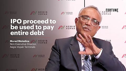In an exclusive interaction with Fortune India, Murad Moledina, Non-Executive Director at Aegis Vopak Terminals, said the capital raised from the IPO will be used to fully repay ₹2,016 crore of debt, while ₹671 crore will be utilised for capital expenditure for cryogenic LPG storage terminals at Mangalore. A part of the capital will be used to meet general corporate purposes.