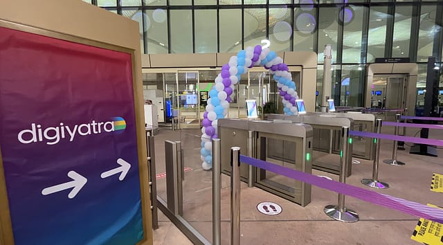 DigiYatra uses facial recognition technology to enable contactless and paperless passenger processing at airport checkpoints. The system is aimed at reducing wait times and streamlining airport movement, while incorporating data privacy and security safeguards.