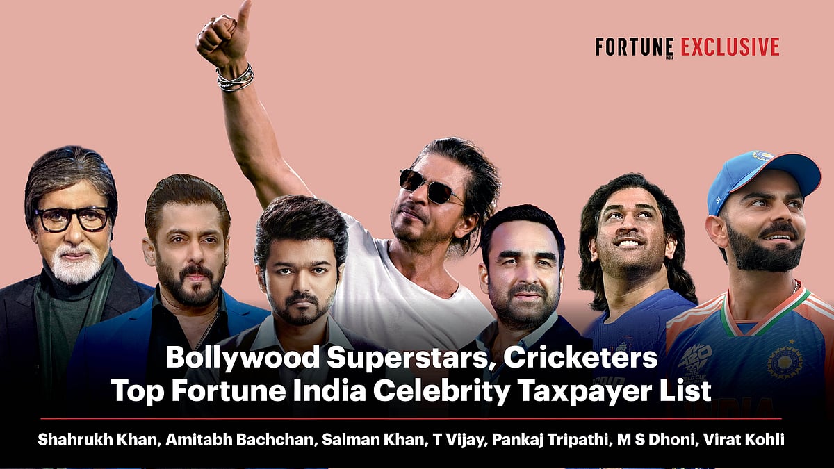 Bollywood superstar Shah Rukh Khan has topped the list of celebrity tax payers, followed by Tamil actor Thalapathy Vijay, according to a list compiled by Fortune India magazine. Khan paid an advance tax of ₹92 crore in FY24. Film star Salman Khan and ace actor Amitabh Bachchan are on the third and fourth position respectively. From the world of cricket, Virat Kohli paid advance tax of ₹66 crore in FY24 amid mega contribution from M S Dhoni and more current as well as past players.