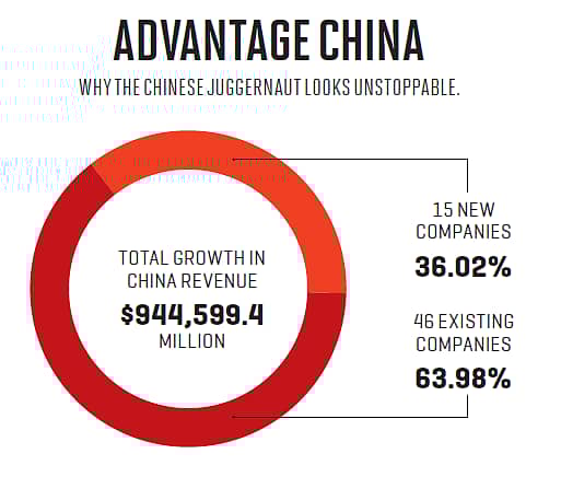It’s getting awfully lonely in BRIC (it may just be the last time we use the moniker). Sample this: The number of new Chinese entities is equal to the total number of companies from Russia and India put together. Not impressed? The growth in revenue over the past year for Chinese companies is nearly equal to the total revenue (you read that right: total) of all the companies from the other three nations (see graphic).