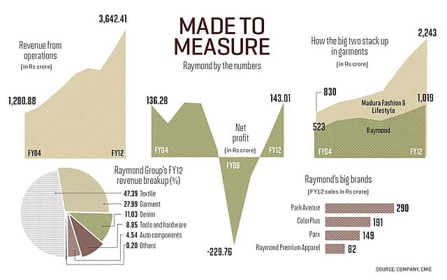 In FY12, Grasim’s garment and textile business turnover at Rs 3,289 crore pipped Raymond’s Rs 3,146 crore. Throw in an additional Rs 1,700 crore for Grasim from the recent Pantaloon acquisition, and it has clearly emerged the leader in India’s Rs 60,000 crore apparel industry.