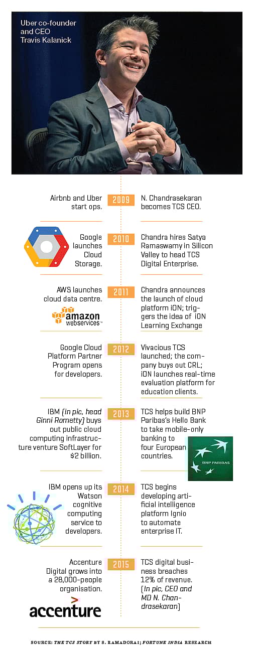 Chandra was among the early IT bosses who saw the disruptive potential of companies that were created for and by the digital world. Yes, the likes of Accenture and Cognizant recognised the force of digital and had already set in motion their digital plans, but none of them had the big problem that Chandra faced: getting upwards of three lakh employees ready for the digital age.