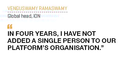 When iON was launched, many within the organisation saw it as a threat to the company’s DNA: focussing on automation of processes rather than on throwing platoons of coders into solving a problem was completely against accepted practice. With iON, a client, say an auto manufacturer, could get on-demand analytics by logging in, rather than going through an army of TCS associates. Chandra, himself just a couple of years old as CEO, entrusted the fledgling business with about 135 customers (then known as TCS Small and Medium Business) to Ramaswamy.